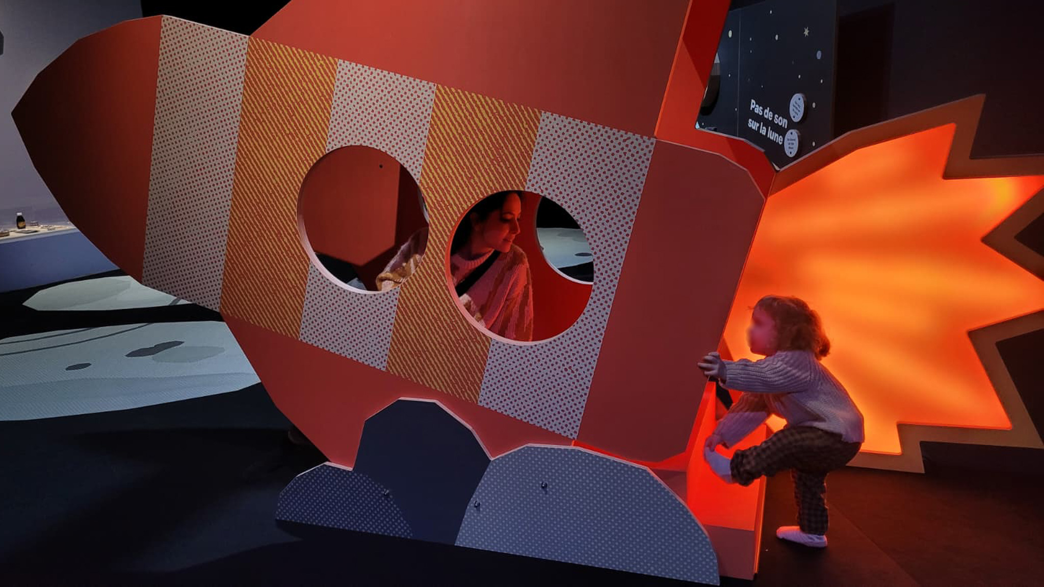 « La visite se fera en chaussettes. » Les visiteurs rangent consciencieusement leurs souliers dans des casiers disposés au sol. Les pointures ne dépassent guère le 26. Au musée de l’Air et de l’Espace, la nouvelle exposition « Petits pas sur la Lune » se destine aux bambins de 2 à 6 ans. Depuis le 14 décembre et jusqu’au 17 mai 2026, les jeunes pousses peuvent s’y rendre accompagnées de leurs parents en sus de l’exposition permanente.