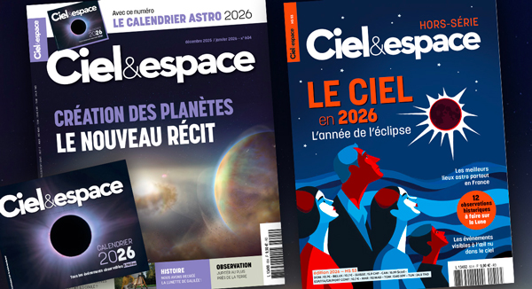 Le Ciel & espace 604, avec le Calendrier 2026, et le hors-série Le ciel en 2026